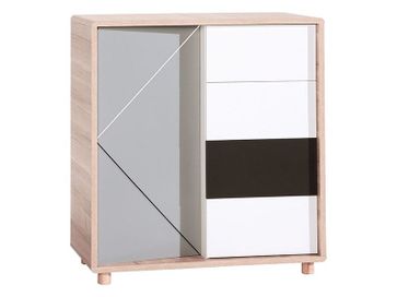 Комод низкий из коллекции Evolve очень вместительный и функциональный; За левой дверкой - три полки, которые Вы можете использовать по собственному усмотрению, полки регулируются по высоте; В правой верхней части комода находится полка за закрывающейся дверцей; Два глубоких ящика ниже. Необходима предоплата. Возможна рассрочка. Страна производства: Польша Возможен самовывоз. Есть доставка.