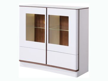 Остекленный комод с нетипичным выгнутым фасадом;В верхней части комода остекленные дверцы, за которыми расположены стеклянные полки;Полки оборудованы подсветкой, которая подсветит как предметы, находящиеся на полках, так и заднюю стенку элементов;В нижней части витрины находятся выдвижные ящики;Ящики открываются при помощи ручки-выемки в фасаде;Ящики оборудованы системой тихого закрывания - они не помешают вам когда будут закрываться;3D двери - открываются вместе с углом. Требуется дополнительно 30 см. ширины для открывания дверок. Необходима предоплата. Возможна рассрочка. Страна производства: Польша Возможен самовывоз. Есть доставка.