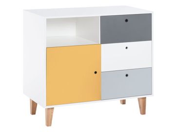 В правой части комода 3 выдвижных ящика, оборудованных системой тихого закрывания - они не помешают вам, когда будут закрываться;В левой части сверху небольшое пространство для вещей, которые всегда должны быть под рукой. В нижней части дверка, за которой расположена полка;Комод доступен с фасадами различной расцветки: шафран, голубой, красный, дуб. Можно подобрать соответствующий цвет под стиль вашего помещения;Кроме того, позже можно докупить нижнюю левую дверцу другого цвета и заменить её;Ножки сделаны из массива;В качестве ручек используются отверстия с силиконовым наполнением - это удобно и практично. Необходима предоплата. Возможна рассрочка. Страна производства: Польша Возможен самовывоз. Есть доставка.