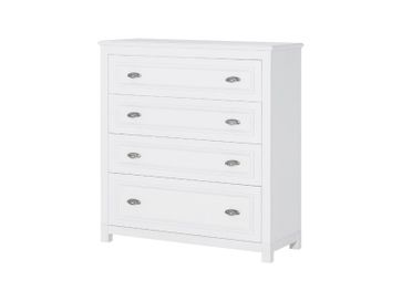 Классический комод с четырьмя ящиками дополнит интерьер вашей спальни; Ящики оборудованы системой тихого закрывания - они не помешают вам, когда будут закрываться; Металлические ручки в цвете патинированного серебра подчеркнут элегантность этого предмета мебели. Необходима предоплата. Возможна рассрочка. Страна производства: Польша Возможен самовывоз. Есть доставка.
