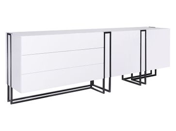 Дизайнерский комод с двумя дверками, за которыми находится по одной полке, и тремя выдвижными ящиками; Широкие выдвижные ящики и дверки открываются нажатием - push-to-open; На поверхности комода можно разместить фотографии, статуэтки. Необходима предоплата. Возможна рассрочка. Страна производства: Польша Возможен самовывоз. Есть доставка.