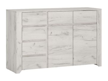 Широкий и вместительный 2-дверный комод с шестью небольшими ящиками, которые расположены в левой части комода и сверху; Под верхними ящиками за дверками расположена широкая полка; Выдвижные ящики и дверцы открываются за ручки-выемки в фасадах. Необходима предоплата. Возможна рассрочка. Страна производства: Польша Возможен самовывоз. Есть доставка.