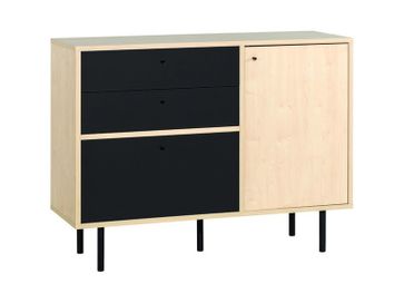 Комод с выдвижными ящиками и дверцей, за которой расположена регулируемая по высоте полка;В комоде имеется 3 выдвижных ящика и дверца, оборудованные системой тихого закрывания - они не помешают вам, когда будут закрываться. Нижний ящик больше верхних - предназначен для объемных предметов;Небольшие эргономичные ручки позволят удобно открывать ящики и дверцу;Высота металлических ножек регулируется - элемент мебели можно разместить на полу с небольшими неровностями;Дополнительная, пятая ножка, придает комоду повышенную устойчивость. Необходима предоплата. Возможна рассрочка. Страна производства: Польша Возможен самовывоз. Есть доставка.