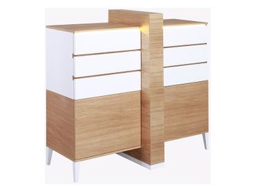Вместительный высокий комод необычной формы;Справа и слева расположено 6 выдвижных ящиков;Ящики оборудованы системой тихого закрывания;Справа и слева под ящиками находятся дверцы, за которыми расположены полки;Центральная перегородка выступает за край комода на 12 см.;Над ручками-выемками расположена подсветка, которая подчеркнет необычные формы мебели. При выдвижении верхних ящиков подсветка осветит внутреннюю часть ящиков. Необходима предоплата. Возможна рассрочка. Страна производства: Польша Возможен самовывоз. Есть доставка.