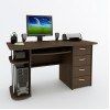 Простой, элегантный стол компьютерный с тумбой - это важная и функциональная деталь интерьера, которая поможет создать достаточно удобное и комфортное рабочее место для школьника, студента или офисного работника. Большая столешница позволяет разместить монитор ПК или ноутбук, настольную лампу или офисное оборудование. Выкатная панель для клавиатуры и мышки, расположенная под столешницей поможет сэконимить пространство на столе. С правой стороны стола имеется встроенная тумба с четырьмя выдвижными ящиками для хранения бумаг, документов, канцелярских и письменных принадлежностей. Слева находится открытая секция с декоративной металлической стойкой, разделенная на удобную подставку под блок ПК и дополнительную полку для вспомогательного оборудования. Купить компьютерный столик из высококачественного материала по доступной цене вы можете в интернет магазине "МебельВкуса". None Есть доставка.