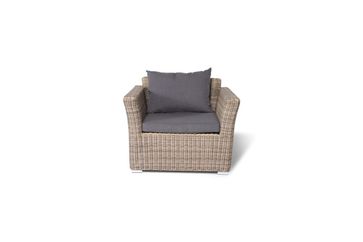 Высококачественный и неприхотливый искусственный ротанг серо-желтого оттенка Круглое плетение Прочный алюминиевый каркас, выдерживающий до 200 кг Подушки выполнены из водостойкой полиэфирной ткани для защиты мебели от дождя и солнца Съемные чехлы серого цвета Алюминиевое основание ножек Вся мебель сделана вручную нашими квалифицированными специалистами В солнечных лучах плетение приобретает более светлый и яркий оттенок Подходит для использования внутри помещения и на открытом воздухе