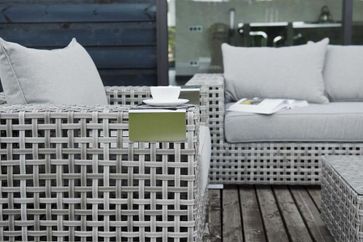 Ручное плетение. Подлокотники дивана и кресел оснащены алюминиевыми подставками. В комплекте подушки со съемными чехлами.