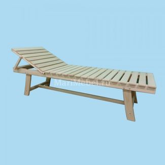 Лежак складной деревянный со спинкой, которую можно быстро регулировать по наклону, сделан из дерева, из липы. Кроме всего прочего Вы можете его покрыть специальной пропиткой, а посему использовать подобные элементы мебели можно практично и дома, и в саду, и даже в бане.