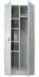 Локер ПАКС ШРМ-22/800У Шкаф металлический разборной двухсекционный ШРМ-22/800У, предназначен для хранения сменной одежды. В одном отделении находятся полка для головных уборов, крючки для одежды и перекладина для вешалки. В другом отделении - четыре регулируемых по высоте полки. Каждое отделение шкафа оснащено врезным замком. Покрытие - полимерное порошковое серого цвета (RAL 7035). Ширина одной секции - 400 мм. В комплект входит: полка для головного убора; 1 перекладина; 2 крючка; 4 регулируемые полки; 2 врезных замка. None