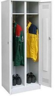 Локер ПАКС ШРМ-АК Шкаф металлический ПАКС ШРМ-АК разборной двухсекционный, предназначен для хранения сменной одежды. В каждом отделении находятся полка для головных уборов и перекладина для вешалки. Отделение шкафа оснащено индивидуальным врезным замком. Покрытие - полимерное порошковое серого цвета (RAL 7035). Ширина одной секции - 300 мм. В комплект входит: 2 перекладины; 4 крючка; 2 врезных замка. None