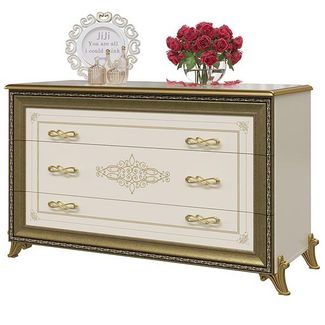 Комод Версаль СВ-06. Цвет - слоновая кость. Размер (ШхГхВ) 123х53х80 см. Практичный комод с тремя выдвижными ящиками, выполнен в роскошном дворцовом стиле - фасады с узорами шелкографии и пышным декором с патиной, фигурные ножки и витые ручки. Комод Версаль - французский шарм Вашего дома! None Есть доставка.