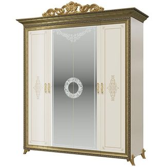 Шкаф 4-х дверный с короной Версаль СВ-01К. Цвет - слоновая кость. Размер (ШхГхВ) 196х70х234 см. Роскошный гардероб в дворцовом стиле креативно увенчан великолепной резной короной и декорирован зеркалами с рисунком. В центре расположено отделение со штангой для вешалок, в боковых отделениях - четыре полки. Корона № 3 в комплекте. None Есть доставка.