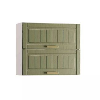 Моби Софи шкаф навесной 800 гориз. 2 двери Белый Дуб Зелёный ID - 311121