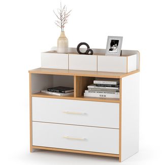 Комод Вуди два ящика 02.10. Цвет - белый премиум/дуб крафт золотой. Размер (ШхГхВ) 77х42х80 см. Оригинальная конструкция комода соединяет два выдвижных ящика, две открытых ниши и три шкатулочки. Шкатулки открываются за край фасада. None Есть доставка.