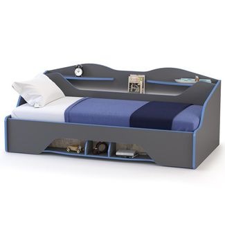 Кровать с основанием и выдвижным ящиком Индиго. Цвет - тёмно серый/граффити. Размер 205х113х83 см. Спальное место 900х2000 мм. Ортопедическое основание в комплекте, матрас приобретается отдельно. Безопасно закруглённые уголки кровати, приспинная стенка с полочками, открытые ниши на фасаде ящика - всё продуманно до мелочей. None Есть доставка.