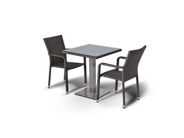 На 2 персоны из искусственного ротанга обеспечит удобство и уют обедающей компании. Прочный каркас изготовлен из алюминия, что гарантирует продолжительный срок службы модели. Стулья с подлокотниками отличаются повышенным удобством за счет изогнутой спинки. Ручное плетение делает неповторимым и уникальным каждое изделие. Квадратный стол выгодно дополнен стеклянной столешницей толщиной 5 мм, что делает его более практичным в использовании. Обеденная группа Ачиано - безупречное сочетание качества, практичности и природных мотивов.