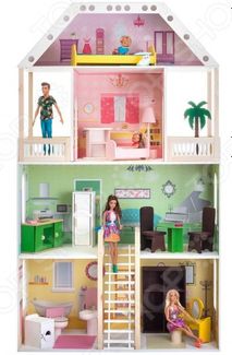 Кукольный дом с аксессуарами PAREMO Поместье Шервуд оригинальный подарок для маленькой принцессы. Дом выполнен из дерева и украшен принтом в нежных тонах. Лицевая часть домика полностью открытая, благодаря чему ребенок может беспрепятственно иметь доступ к любой игровой зоне. Боковые стенки оборудованы окошками. В доме предусмотрено четыре этажа с лестницей. На первом этаже расположена ванная комната и прихожая, на втором этаже кухня и гостиная, на третьем детская комната с выходом на два балкона, а на четвертом этаже спальня. Красивый дизайн домика позволит легко вписаться в интерьер детской комнаты. Подходит для кукол ростом до 30 см. В комплекте представлено шестнадцать предметов мебели и аксессуаров. Благодаря инновационной технологии нанесения рисунка на дерево, декор дома более устойчив к выцветанию и механическим повреждениям. Чем полезна игра с куклами развивает мелкую моторику рук; способствует развитию социальных навыков; побуждает ребенка исследовать окружающий мир; расширяет воображение; развивает художественный вкус; способствует эмоциональному развитию; помогает развить чувство ответственности и заботы. Обратите внимание, что куклы и текстиль не входят в комплект поставки и приобретаются отдельно. None Возможен самовывоз. Есть доставка.