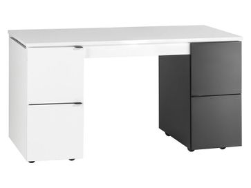 Стол "передвижной". Его преимущество состоит в многофункциональном использовании. За столом можно работать как в одиночку, так и вдвоём, причём сидя напротив друг друга или рядом с одной стороны – как вам будет удобнее. Для гостей письменный стол может легко превратится в обеденный. Всё зависит от того, какую роль он должен выполнять в данный момент;Спросите, как это возможно? Столешница стола мобильна и благодаря специальным направляющим спроектирована так, чтобы каждый из элементов мог изменять своё положение по отношению к другому. Из двух тумб одна имеет два выдвижных ящика, другая однодверная с полкой внутри. Под столешницей скрыты еще две ниши на каждой из тумб. Там можно спрятать еще больше письменных принадлежностей и небольших предметов; очень удобно, когда надо быстро привести порядок на столе;Столешница устойчива к влаге и жидкости, не впитывает красителей. Характеризуется высокой стойкостью на царапины и не боится взаимодействия с высокими температурами;Современные технологии помогут увеличить габариты письменного стола;Передвижные тумбы с ящиками и полками имеют потайные места, заметные только при выдвижении тумбы из-за столешницы;За столом легко смогут разместиться двое детей;Ящики открываются с помощью современных, элегантных ручек, выполненных из высококачественных материалов. Направляющие Quadrо с системой silent system отличаются сверх тихой работой и характеризуются надёжностью в использовании;Стол доступен в двух цветовых вариантах: с черной и белой столешницей. Необходима предоплата. Возможна рассрочка. Страна производства: Польша Возможен самовывоз. Есть доставка.