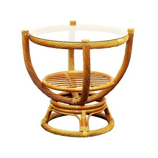 Изюминкой стола является оригинальное плетение, выполненное из перекрученных между собой тонких стволов ротанга.