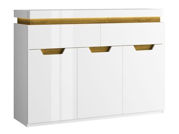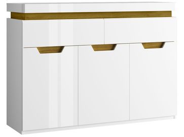 Комод Торино станет ярким акцентом в интерьере гостиной и освежит обстановку благодаря оригинальным прорезям в дверцах и деревянной вставке под столешницей.<br /> Комбинация разных по размеру закрытых секций позволит оптимально разместить в комоде любые вещи. Дополнительное преимущество модели — плавное и бесшумное движение ящиков и створок.<br>