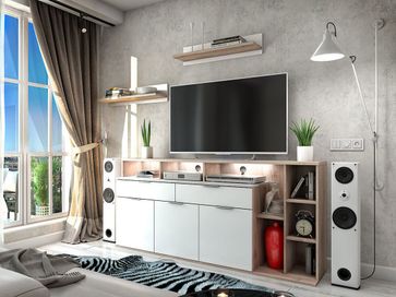 Преимущества: <br> скрытые крепления — полка будет отлично смотреться в интерьере, не выделяясь элементами фурнитуры;<br> необычный дизайн — комбинация светлого дерева и белых элементов стильно украсит интерьер;<br> модульная серия — модель гармонично сочетается с элементами серии Компакт.<br>