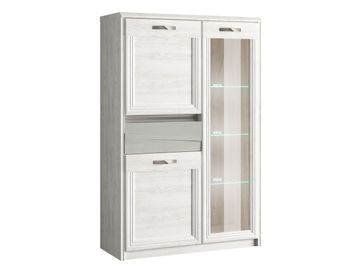 Шкаф-витрина Модена Лайт — эстетичный и функциональный вариант для современного интерьера гостиной. Комбинация из полок разного размера дает возможность комфортно разместить все необходимые вещи. Петли с доводчиками обеспечивают плавное и бесшумное закрытие створок.<br>