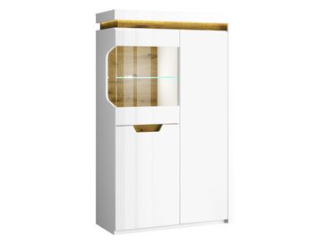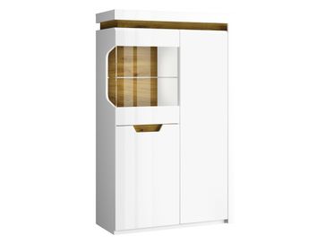 Шкаф-витрина Торино добавит в интерьер гостиной стильный акцент. В отделке модели удачно сочетаются древесные и белые оттенки. Практичная особенность шкафа — комбинация из полок разной ширины и высоты, что позволяет оптимально разместить все необходимые предметы.<br>