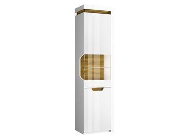 Шкаф-витрина Торино добавит яркий акцент в интерьер гостиной. Прозрачная вставка-портал и контрастное сочетание белых фасадов с отделкой под дерево придают модели особый шарм.<br>