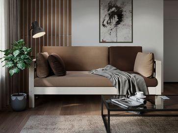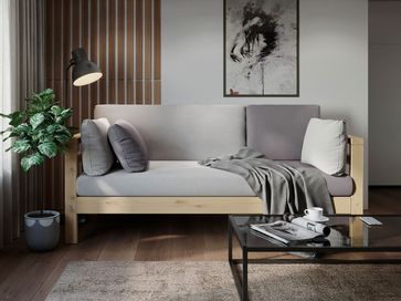 Прямой диван Домино, выполненный в стиле лофт, станет эргономичным дополнением зоны отдыха в доме, офисном помещении или на даче, а также будет прекрасно смотреться в гостиной или на кухне. Декоративные подушки подарят дополнительный комфорт при посадке. Прочный каркас из массива дерева обеспечивает надежность и долгий срок службы, а высокие опоры облегчают уборку.<br>