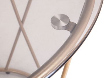 Журнальный столик Алюр — стильная модель в современном дизайне из металла, окрашенного в золотой цвет. На столешницу из тонированного стекла удобно положить телефон, книгу, предметы декора. При желании столик можно сервировать для чаепития или легкого перекуса во время просмотра телевизора.<br>