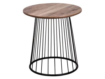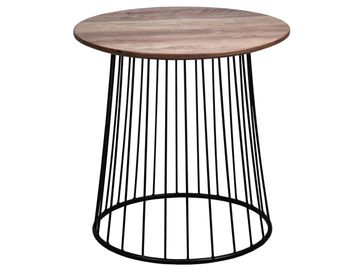Журнальный столик Флип отлично подойдет для современного интерьера гостиной, спальни или прихожей в стиле лофт. Каркас из металлических прутьев черного цвета составляет идеальный дуэт с круглой столешницей оттенка натурального дерева. Компактная модель будет гармонично смотреться в помещении любого размера.<br>