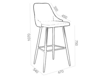 Характеристики: <br> Материал ножек: металл.<br> Материал обивки: велюр.<br> Высота сиденья от пола: 750 мм.<br> Максимальная нагрузка: 120 кг.<br> None Страна производства: Китай