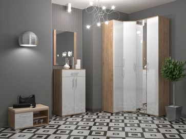 Распашной шкаф Сан-Марино — функциональная модель, которая позволит рационально использовать буквально каждый сантиметр прихожей. Просторная ниша для верхней одежды дополнена вместительными полками, где удобно хранить коробки с обувью, сезонные вещи и аксессуары.<br>