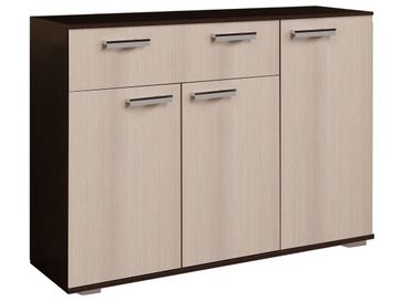 Систему хранения модели образуют три отделения за распашными дверцами и один вместительный выдвижной ящик. Такое наполнение является универсальным и сможет подойти для удобного хранения многих предметов. Широкая поверхность изделия также может использоваться, на ней можно выгодно расположить цветочные горшки, фоторамки и другие предметы декора.<br>