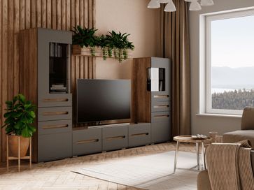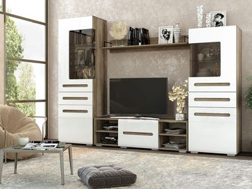 Шкаф-витрина Наоми станет отличным дополнением интерьера гостиной. За стеклом можно разместить предметы декора или книги, а за глухими фасадами — спрятать личные вещи.<br>