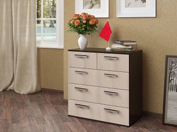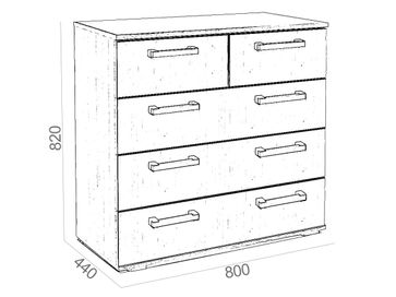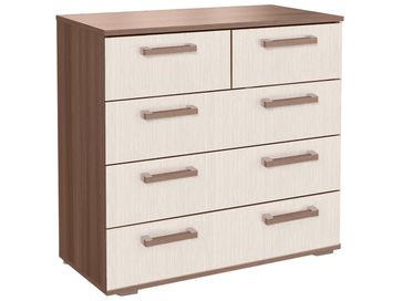 Вместительный комод Стандарт 5 имеет два малых ящика наверху для белья и аксессуаров и три больших, в которых будет удобно хранить одежду и вещи. Модель будет полезной частью интерьера прихожей, спальни, гостиной или детской комнаты.<br>