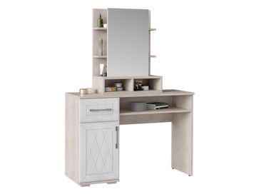 Туалетный столик Британика — универсальная модель, которая расширит систему хранения и станет настоящим украшением интерьера. Фасады с элегантным узором дополнены удобными хромированными ручками. Небольшая глубина позволит установить столик даже в небольшой комнате.<br>
