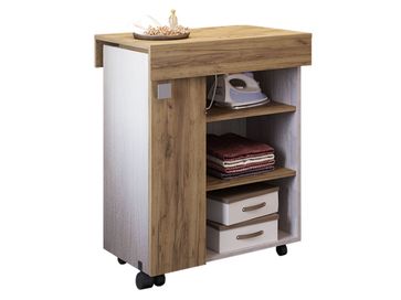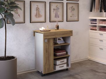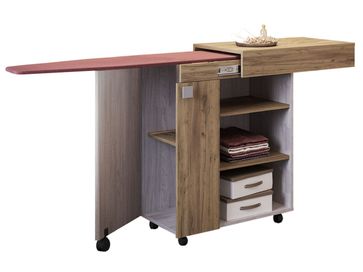 Комод Тео — универсальный предмет мебели, который станет настоящей находкой для небольшого помещения. При необходимости модель легко и быстро трансформируется в гладильную доску, а полки позволят удобно хранить утюг, белье и необходимые под рукой мелочи.<br>