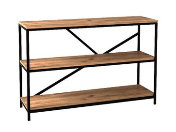Консоль Макси станет удачным дополнением интерьера в стиле лофт и обеспечит удобную зону для хранения на небольшой площади. Черные металлические опоры в сочетании с деревянными столешницей и полками придают модели особую эстетику. На открытых нишах найдется место для книг, различных коробок или аппаратуры.<br>