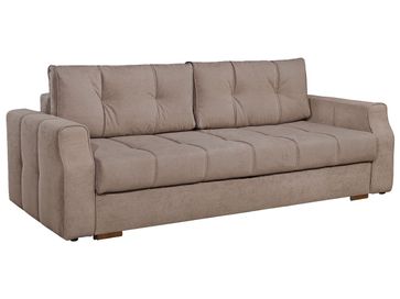 Прямой диван Бенедикт станет стильным и ярким акцентом в интерьере гостиной или спальни. Модель украшена декоративными утяжками, что придает ей особую роскошь. На диване с комфортом устроятся три человека.<br> Бельевой короб — дополнительная зона для хранения постельных принадлежностей.<br> Материал опор — массив сосны. В комплект включены две мягкие приспинные подушки.<br> Наполнение мягких элементов: синтепон, пенополиуретан, войлок.<br /> Высота пружинного блока: 120 мм.<br>