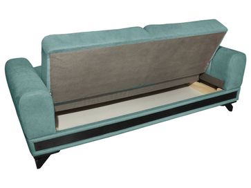 Прямой диван Тиффани — прекрасное сочетание стиля и комфорта. Дизайн исполнения подойдет к ретро интерьеру, к современной обстановке, а также ко множеству других решений. Задняя часть дивана обита основным материалом, что позволяет поставить его в центре комнаты или использовать для зонирования помещения. Вместительный ящик для белья экономит пространство и идеален для хранения вещей.<br>