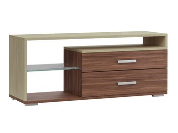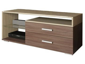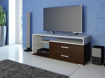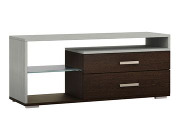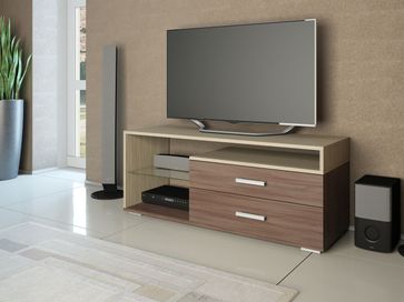 Большая ТВ-тумба Бруна имеет широкую столешницу, которая подходит для телевизора практически любой диагонали. Открытые полочки подойдут для игровых приставок или видеоплееров, а два вместительных ящика позволят разместить сопутствующие аксессуары.<br>