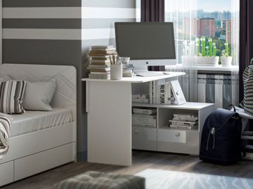 За детским письменным столом Абрис ребенку будет удобно делать уроки, рисовать или заниматься хобби. На просторной столешнице легко поместятся компьютер и лампа, при этом останется пространство для учебника и тетради. Расположенные под углом ящики позволят поддерживать в порядке канцелярские принадлежности и разные мелочи.<br>