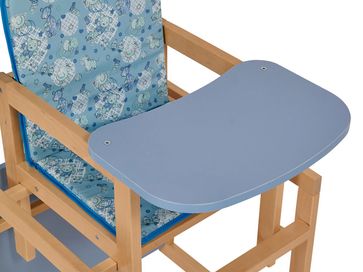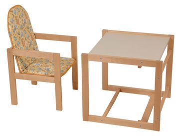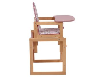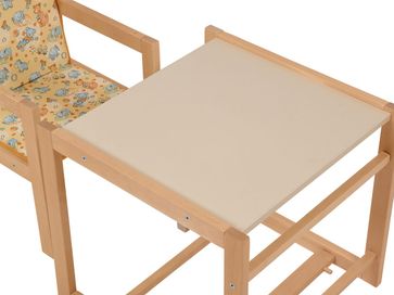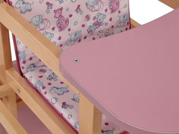 Стульчик для кормления Матрешка прекрасно подойдет не только для приема пищи, но и для игр и обучения. Модуль трансформируется в отдельно стоящие столик и стульчик и рассчитан на детей в возрасте до 6 лет.<br> Мягкое сиденье обтянуто тканью с водонепроницаемой пропиткой, легко моется и надолго сохранит привлекательный внешний вид.<br> Характеристики: <br> Материал каркаса: массив березы.<br> Материал столешницы: ЛДСП.<br> Материал сиденья: виниллайт (х/б ткань с водонепроницаемой пропиткой).<br> Размер столика (ВхШхГ): 510 х 458 х 500 мм.<br> Размер стульчика (ВхШхГ): 690 х 625 х 420 мм.<br> Максимальная нагрузка: 40 кг.<br> <br> None Страна производства: Россия