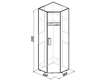 Угловой шкаф Хайпер — простая и функциональная модель, выполненная в современном стиле. Внутри шкафа расположены удобная полка и встроенная штанга для вещей.<br>