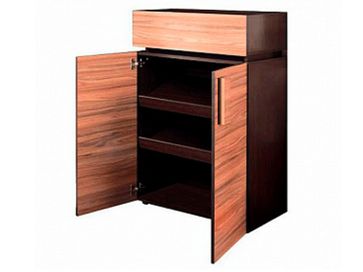 Очень вместительная тумба для обуви Хайпер, выполненная в геометричном дизайне. Конструкцией предусмотрено две специальные полки для обуви, расположенные под углом и выдвижной ящик для обувной косметики.<br> Корпус обувницы выполнен из качественной ЛДСП, а фасад сделан из МДФ. None Страна производства: Россия