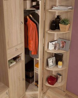Преимущества: <br> функциональная конструкция — предусмотрены полки за распашными дверцами, выдвижной ящик и открытая ниша;<br> продуманные габариты — модель имеет небольшую ширину, поэтому ее можно расположить в самом скромном по площади пространстве;<br> универсальное исполнение — шкаф можно собрать как на левую, так и на правую сторону.<br>