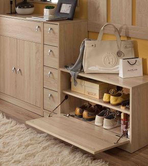 Тумба Комфорт позволит организовать систему хранения для нескольких пар сезонной или домашней обуви. Изделие великолепно дополнит любой современный интерьер и порадует широкой функциональностью.<br> Преимущества: <br> продуманное наполнение — пространство внутри разделено горизонтальной перегородкой;<br> надежная конструкция — способна выдержать нагрузку до 20 кг;<br> комфортная эксплуатация — фасад открывается вниз, что особенно удобно для малогабаритной прихожей.<br>