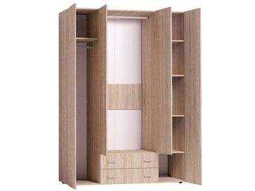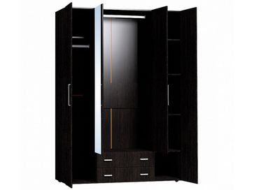 Широкий распашной шкаф для одежды Монако 5 — отличный вариант для спальни, гостиной или прихожей. Выдвижные ящики, штанги и регулируемые по высоте полки способны хранить большое количество ваших вещей.<br> Характеристики: <br>Материал корпуса и фасада: ЛДСП толщиной 16 мм.<br> Материал задней стенки: ХДФ.<br> Детали облицованы кромкой ПВХ толщиной 0,45 мм.<br> Толщина зеркала: 4 мм.<br> Зеркало проклеено сзади специальной пленкой.<br> Материал ручек шкафа: металл.<br> В ящиках установлены шариковые направляющие.<br> Шкаф имеет регулируемые опоры.<br> Ширина штанг: 777 мм и 368 мм.<br> Шкаф крепится на стену за подвесы.<br> Варианты комплектации: с зеркалом и без зеркала.<br> <br>