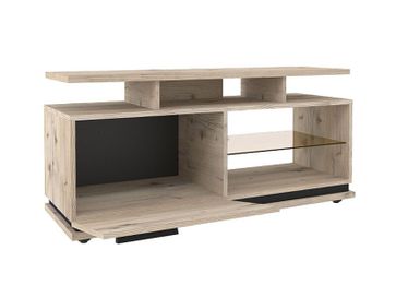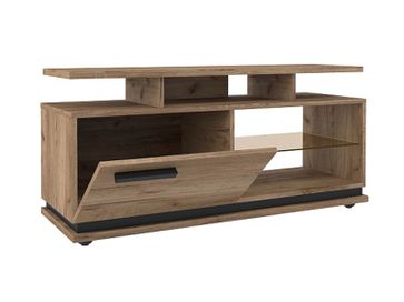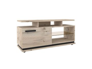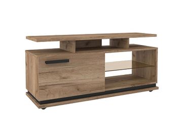 ТВ-тумба Натура идеально подойдет для небольшой гостиной или спальни. Современное сочетание оттенка натурального дерева и затемненного стекла создает стильный и органичный дизайн. Модель имеет как открытые ниши, куда можно поставить мультимедиа-устройства, так и отделение за глухой дверцей для важных мелочей.<br>